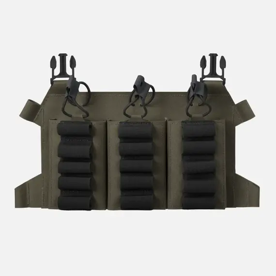 Чрезвычайно легкий, многофункциональный, со скелетированным клапаном, рассчитанный на три магазина M4/AR15 и до 15 патронов для дробовика. Эластичные петли с противоскользящей подкладкой Hypalon® разделяют патроны для дробовика на три секции по пять патронов в каждой. Разработан специально для нарушителей, которые используют дробовик в качестве дополнительного оружия. Клапан идеально подходит для платформы BEARCAT® и системы SPITFIRE®. Магазины закреплены сверху эластичным шнуром с ручками Hypalon®. Этот клапан можно превратить в компактное приспособление для ношения на груди с помощью дополнительного интерфейса.
