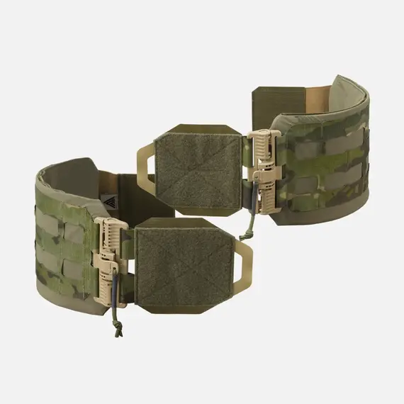 Широкий пояс со скелтоном изготовлен из четырехслойного эластичного нейлона и ламината. Ламинат с лазерной резкой на поверхности делает пояс чрезвычайно легким и совместимым с системой MOLLE/PALS. Он подходит для большинства держателей пластин Direct Action®, в том числе для сверхлегких пластин BEARCAT®. Эластичная часть с 4-сторонним расположением служит дополнительным карманом для плоских предметов или для жестких и мягких баллистических панелей. В комплект входят два полиэтиленовых ребра жесткости, которые обеспечивают жесткость, когда пояс не используется с баллистическими вставками. Широкий скелетонизированный пояс застегивается на 80-миллиметровые пряжки ROC®, которые бесшумны, надежны и просты в использовании. Полуэластичная конструкция обеспечивает дополнительную свободу движений.