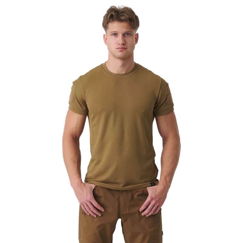 Тактическая футболка — это практичный вариант с короткими рукавами. Футболка изготовлена из быстросохнущей и приятной на ощупь ткани. Материал также отводит влагу — даже при сильном потоотделении. Она хорошо подходит как для занятий на свежем воздухе, так и для тренировок в помещении. Тактическая футболка сочетает в себе универсальный стиль и функциональность. Благодаря двум карманам на плечах и петлям вы можете носить с собой небольшие предметы, например очки. Чтобы персонализировать эту термоактивную футболку, прикрепите нашивку к панели с застёжкой-липучкой.