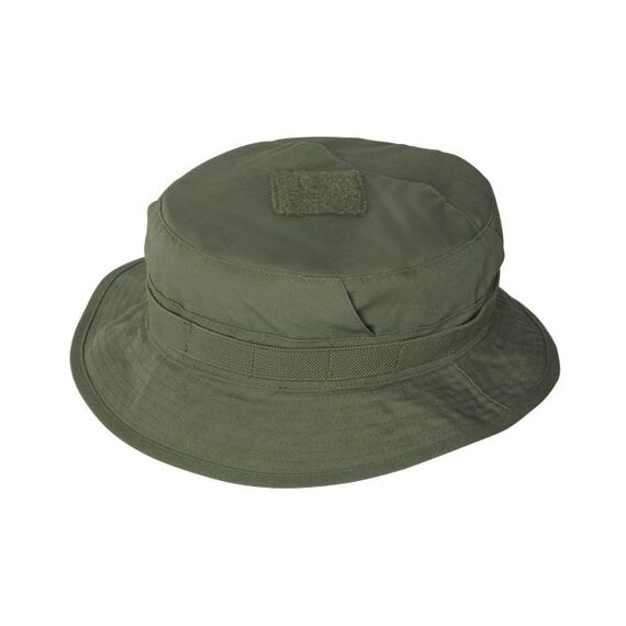 В верхней части шляпы есть панель с крючками и петлями для крепления нашивки «свой-чужой». Повязка, пришитая по окружности шляпы, позволяет прикреплять полезные предметы, например, средства от насекомых или элементы камуфляжа. Повязка от пота на лбу повышает комфорт при ношении, предотвращая накопление пота. Шляпа идеально подходит для лесной местности и служит важным элементом маскировки головы.