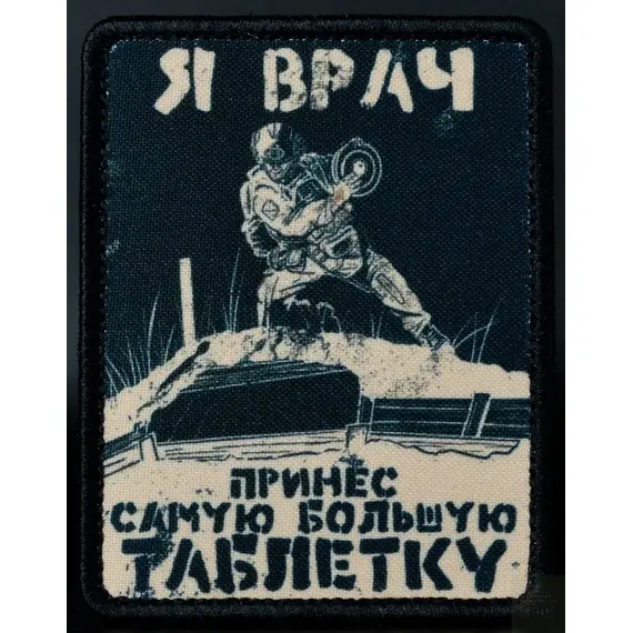 Нашивка, патч "Я врач и принес большую таблетку" от Корпуса Вышивания.