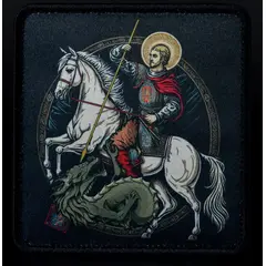Нашивка, патч "Георгий Победоносец" тактическая с липучкой. Быстросъемная нашивка на липучке - велкро, для одежды, шапок, рюкзаков, сумок и тд. Размер: 95х95мм Патч выполнен с отсылкой к Палехской росписи, возникшей из иконописных традиций и представляющего собой русскую миниатюрную живопись....